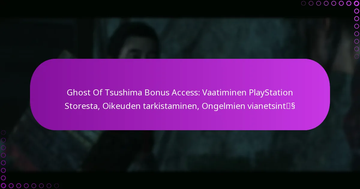 Voit vahvistaa kelpoisuutesi Ghost of Tsushima -bonukseen useiden vaihtoehtoisten menetelmien avulla. Näitä ovat PlayStation-tilisi asetusten tarkistaminen, ostohistorian tarkastelu ja kolmannen osapuolen vahvistustyökalujen hyödyntäminen.