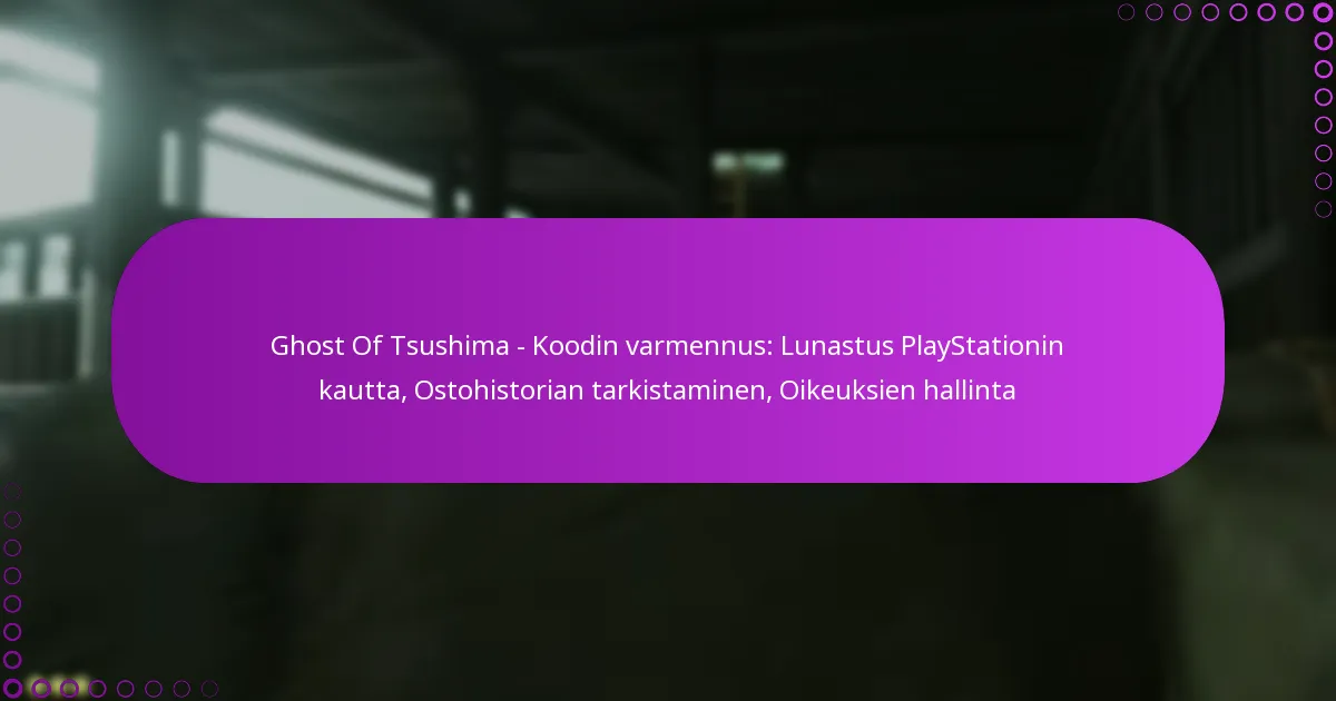 Ghost of Tsushima -pelin oikeuksien hallinta sisältää pääsyn varmistamisen ostettuun sisältöön ja digitaalisten oikeuksien ymmärtämisen. Tämä varmistaa, että voit nauttia pelistä ja kaikesta hankkimastasi sisällöstä ilman ongelmia.