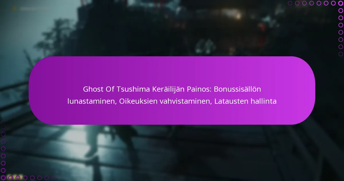 Ghost of Tsushima Collector’s Edition tarjoaa jännittävää bonusmateriaalia, joka voidaan lunastaa PlayStation Storesta erityisten koodien avulla. Varmistaaksesi, että sinulla on pääsy kaikkiin bonuksiisi, on tärkeää tarkistaa oikeutesi PlayStation Network -tilisi kautta. Lisäksi latausten tehokas hallinta parantaa pelikokemustasi estämällä tallennustilaan liittyviä ongelmia ja varmistamalla ajankohtaisen pääsyn kaikkeen sisältöön.