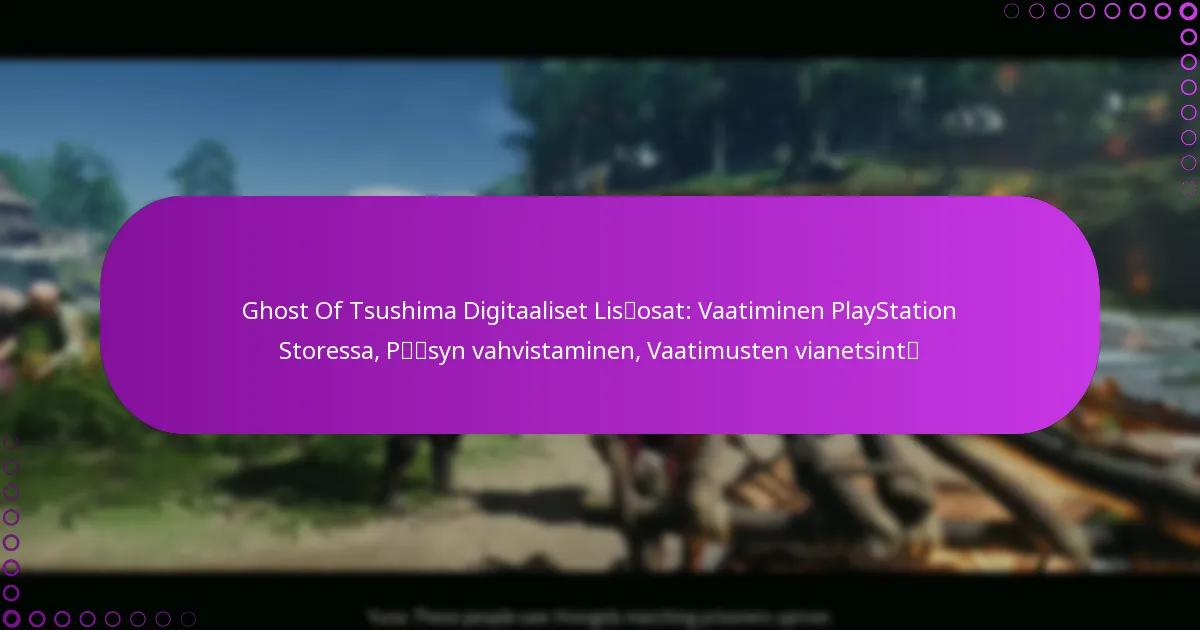 Ghost of Tsushima -pelin digitaalisten lisäosien lunastaminen PlayStation Storesta on suoraviivainen prosessi, joka parantaa pelikokemustasi erilaisilla ladattavilla sisällöillä. Jotta voit varmistaa pääsysi lunastamiisi lisäosiin, on tärkeää tarkistaa lunastustilasi pelikirjastossasi PlayStation Networkissa. Jos kohtaat ongelmia lunastamisprosessin aikana, on saatavilla vianetsintävaiheita, jotka auttavat sinua saamaan pääsyn sisältöösi takaisin.