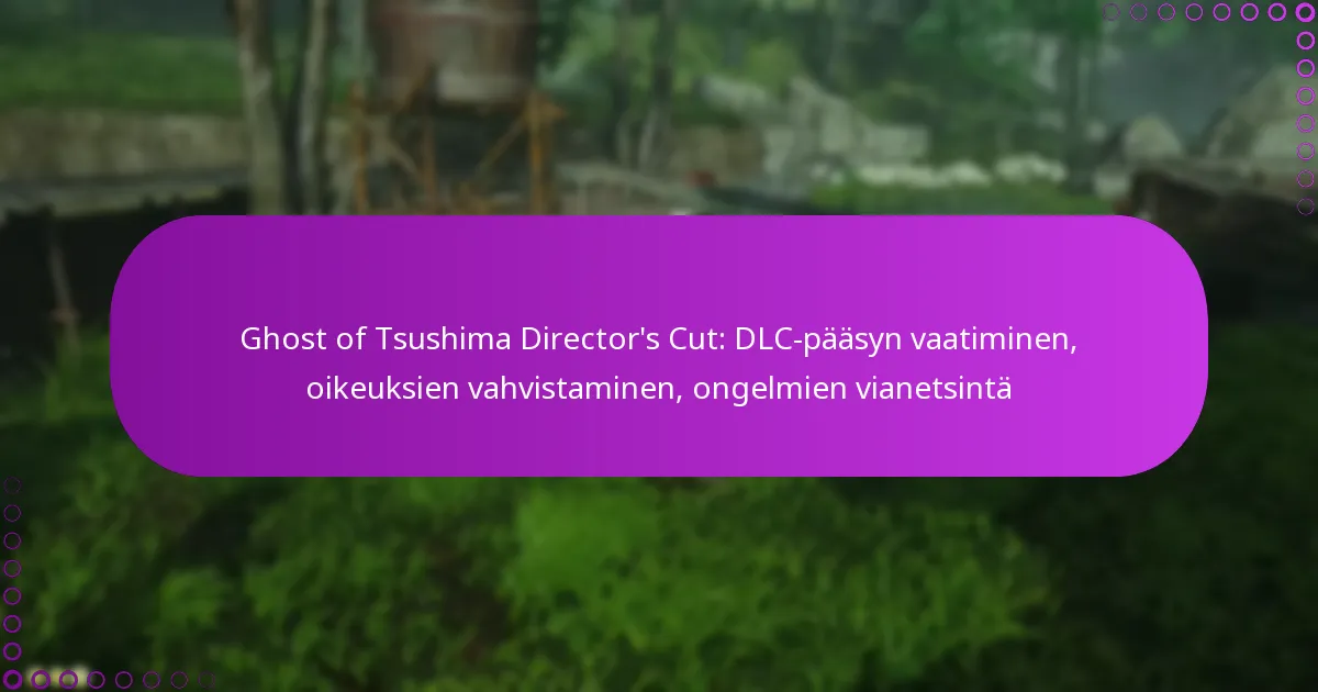 Lunastaessasi DLC-pääsyä Ghost of Tsushima Director’s Cut -peliin, pelaajat kohtaavat usein ongelmia, kuten alueellisia rajoituksia, tiliin liittyviä ongelmia ja oikeuksien vahvistusvirheitä. Näiden yleisten ongelmien ymmärtäminen voi auttaa sujuvoittamaan prosessia ja parantamaan pelikokemusta.