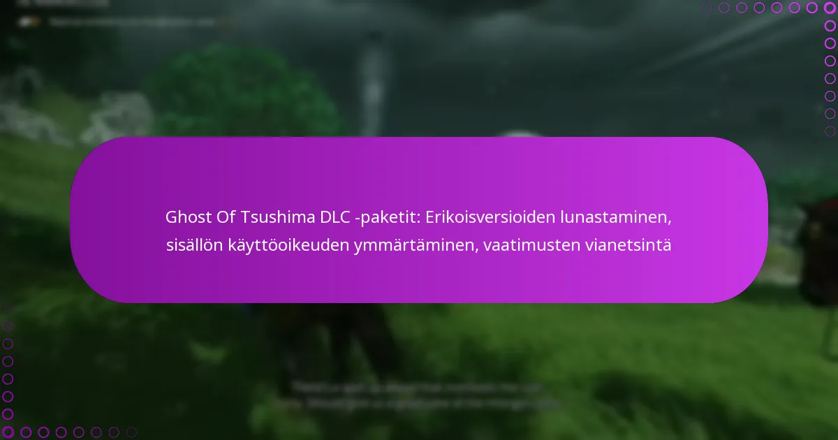Ghost of Tsushima tarjoaa useita ladattavia sisältöpaketteja (DLC), jotka rikastuttavat pelielämystä laajennuksilla ja lisäominaisuuksilla. Erikoispainosten lunastamiseksi ja näiden pakettien käyttämiseksi pelaajien on seurattava tiettyjä vaiheita ostoprosessin mukaan, ottaen huomioon mahdolliset ongelmat, joita voi ilmetä. Kun sisältö on ladattu ja asennettu pelialustasi kautta, voit tarkistaa pelin sisäisen pääsyn varmistaaksesi sujuvan kokemuksen.