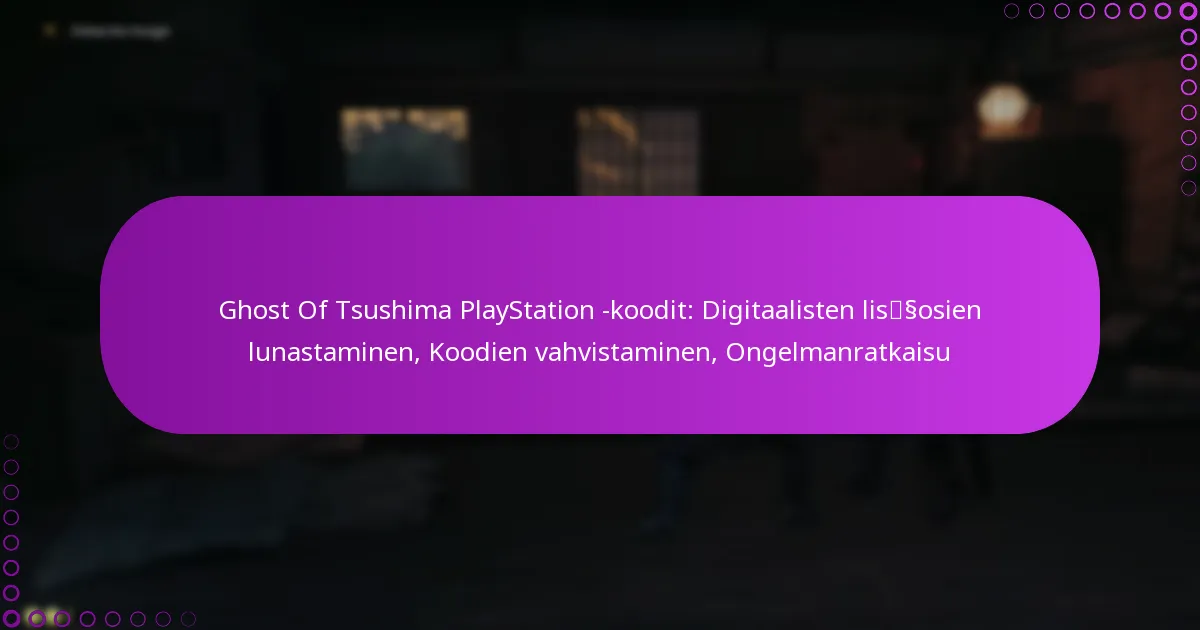 Varmistaaksesi Ghost of Tsushima -PlayStation-koodisi, aloita tarkistamalla niiden aitous ja voimassaolotila. Tämä prosessi varmistaa, että voit onnistuneesti lunastaa kaikki pelin kanssa liittyvät digitaaliset lisäosat.